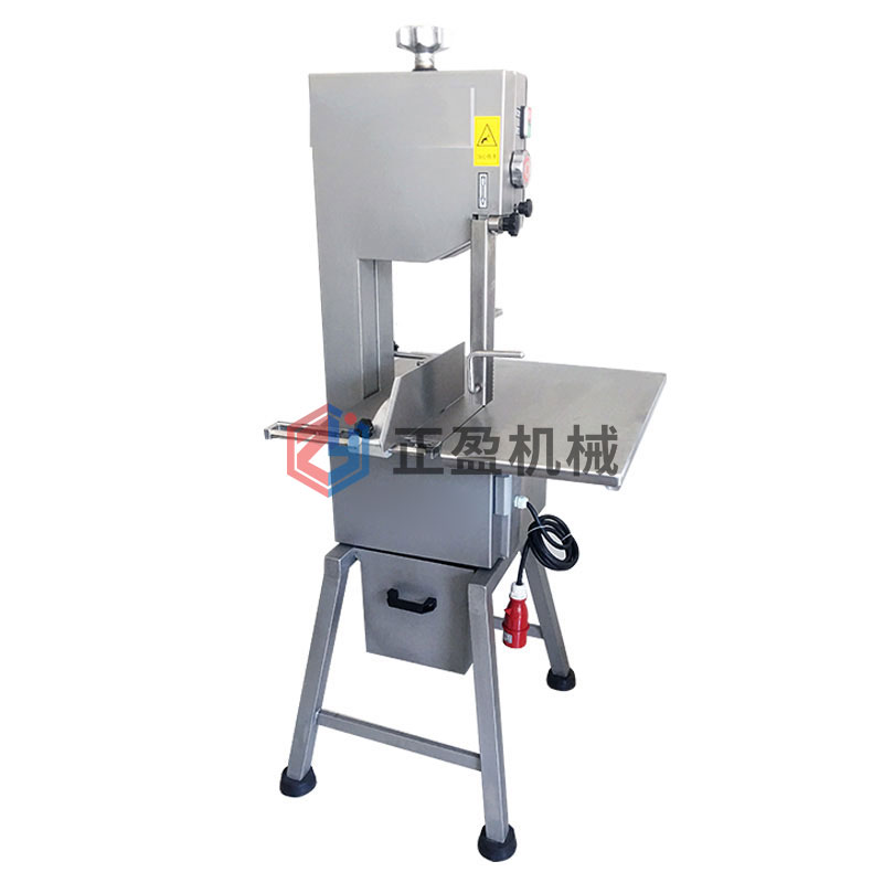 6、絕對不能在沒有任何防護的情況下,直接用手抓住肉去切割,特別是在鋸比較小的肉製品時,例如豬蹄。高速運轉的鋸帶,即使帶了手套也會傷害手指,手套僅能延緩和減輕傷害,決不能麻痹大意,操作時要集中思想,特別小心。